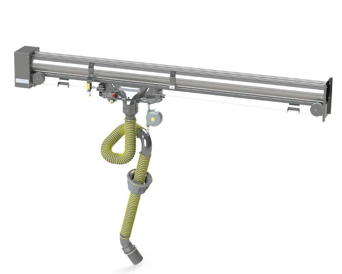 The Balancer-300 is used to keep the exhaust extraction hose from the ground, thereby minimising the risk of damage to the hose and surroundings it also enables easy operation of the exhaust extraction system. The balancer safety chain is there as an additional safety feature.