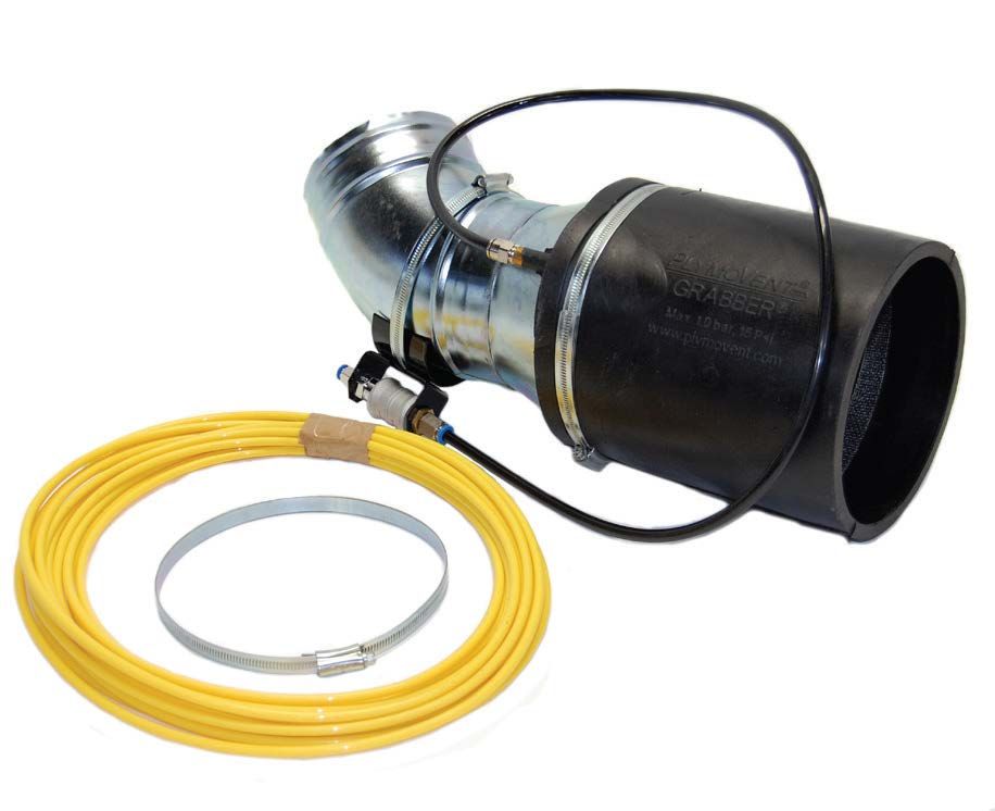 The Pneumatic Grabber® connects to the vehicle exhaust pipe via an inflatable rubber bladder. The Grabber® can be deflated manually. The unique rubber construction is ideal for applications requiring a soft connection that will not damage the exhaust pipe. This nozzle is used mainly in areas where vehicles move in enclosed spaces.